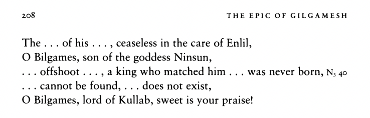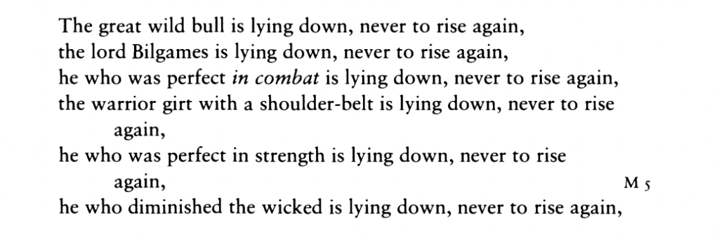 ‘The great wild bull is lying down’George, A. R, trans. The Epic of Gilgamesh: The Babylonian Epic Poem and Other Texts in Akkadian and Sumerian. 2nd ed. London: Penguin Books, 2020.